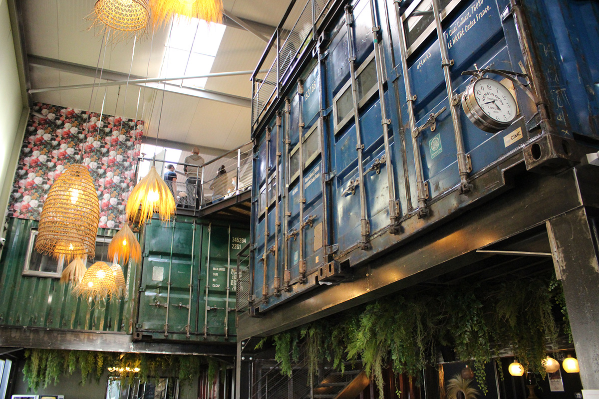 - Bâtiment industriel existant avec un grand volume permettant d’intégrer et de superposer d’anciens containers pour un esprit 100% industriel